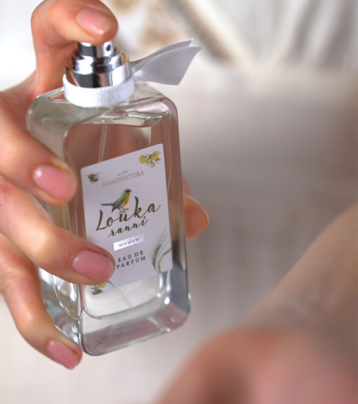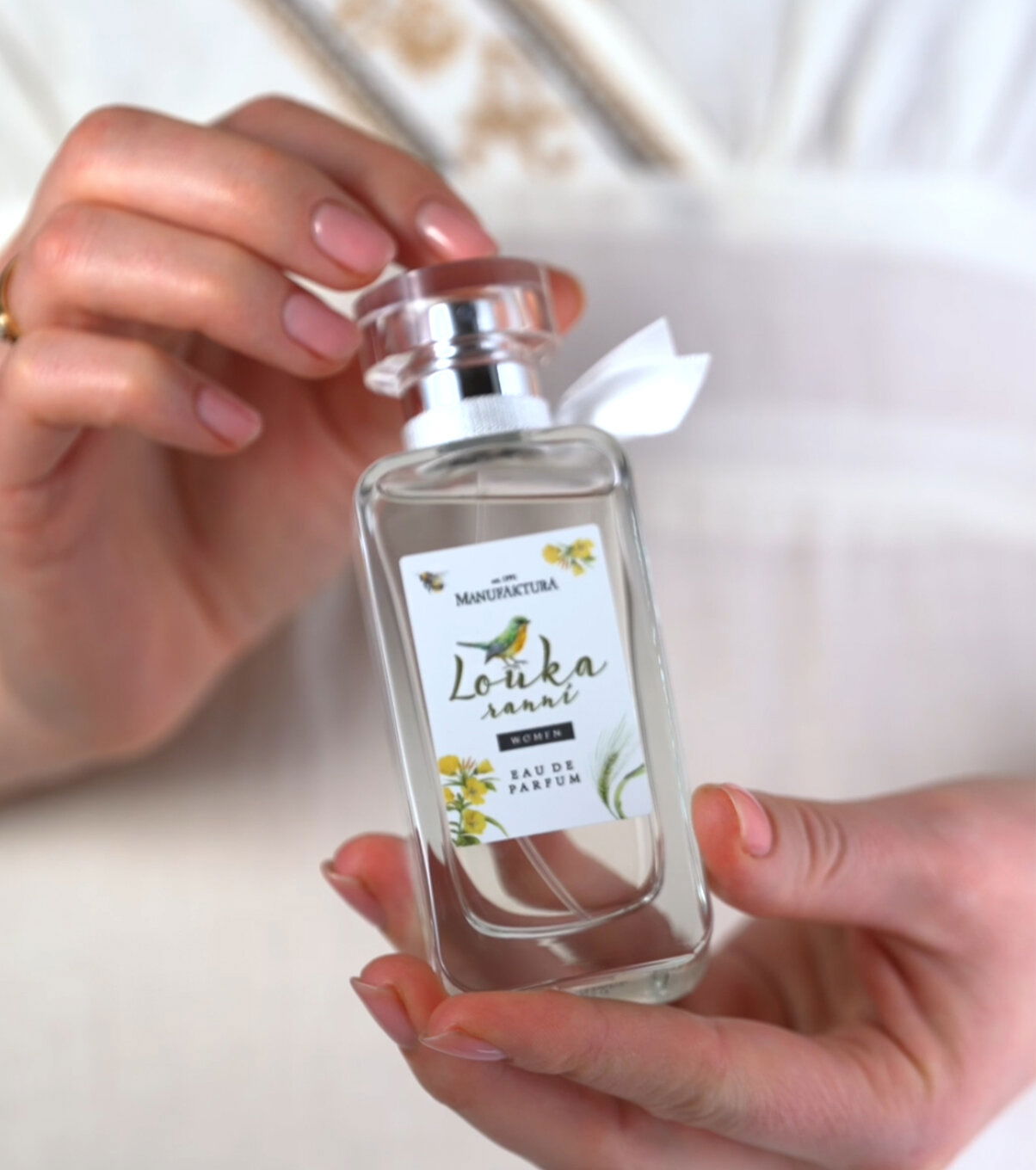 Objevte voňavé kouzlo nového rána! Parfémová voda Ranní Louka je inspirována probuzením přírody a krásou ranního úsvitu, kdy se první sluneční paprsky dotýkají rozkvetlé louky. Jako mladší sestra legendární toaletní vody Louka, vás tato jedinečná vůně zavede na rozkvetlý palouček, kde se probouzí nový den plný vůní, harmonie a radosti.