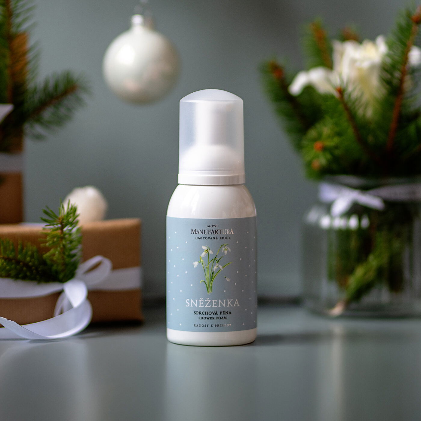 Nechte se pohladit něžným kouzlem zimy se sprchovou pěnou z limitované edice SNĚŽENKA, která vznikla ve spolupráci s oblíbenou influencerkou Shopaholic Nicol. Vzácný extrakt ze sněženky, doplněný o ovesný beta-glukan a mandlový olej poskytuje výživu, napomáhá zklidnění a hydrataci pokožky. Nadýchaná textura se proměňuje v bohatou pěnu, lehkou jako sněhová vločka, která pokožku šetrně čistí a hladí zároveň. Po sprše zůstává pokožka hedvábně jemná a provoněná čistou květinovou vůní, v níž se mísí svěžest zimy s nadějí prvních květů pod tajícím sněhem. Každý dotek připomíná, že i uprostřed zimy se rodí nová radost a krása…