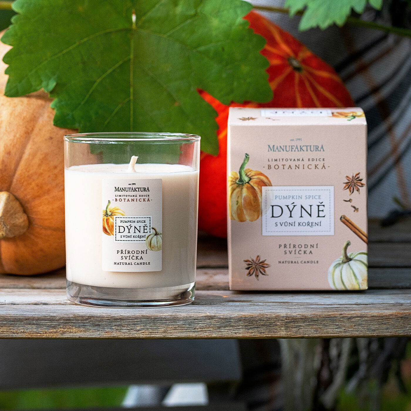 Ručně odlévaná přírodní svíčka s láskou vyrobená v Česku nečadí, uvolňuje intenzivní aroma po celou dobu hoření a je ukryta v krásné papírové krabičce s akvarelovými motivy dýně a koření. Ideální doplněk pro chvíle relaxace, procházky ve vzpomínkách a návraty k sobě. Nechte se obejmout vůní podzimu…