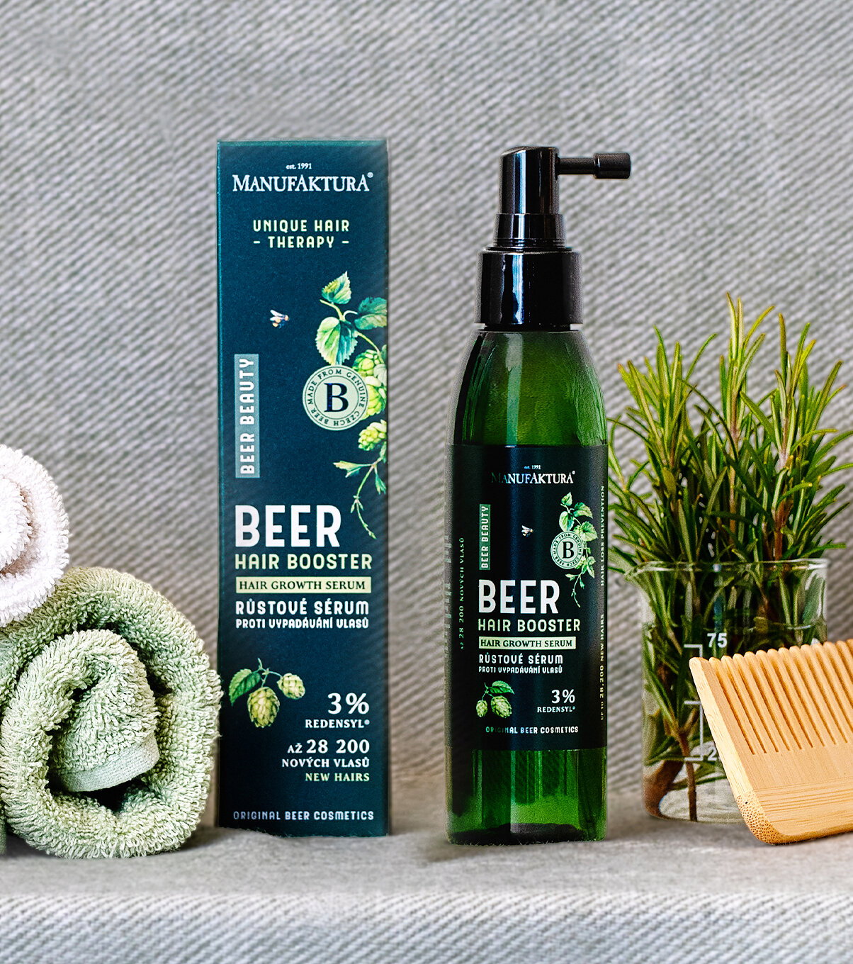 Objevte unikátní vlasové sérum pro hustší a lesklejší vlasy a zahajte intenzivní 3měsíční vlasovou kúru inspirovanou silou přírody. Účinky jsou potvrzeny klinickou studií. Růstové sérum je určeno pro ženy i muže, kteří řeší nadměrné vypadávání vlasů, úbytek hustoty a oslabené vlasové kořínky. Lehké, vysoce účinné a koncentrované složení podporuje růst nových vlasů, posiluje vlasové folikuly a pomáhá vlasům znovu získat objem, vitalitu a přirozený lesk. Díky receptuře v moderním pojetí BEER BEAUTY s patentovaným komplexem Redensyl® působí cíleně na vlasovou pokožku a vlasové váčky – přesně tam, kde růst vlasů začíná.