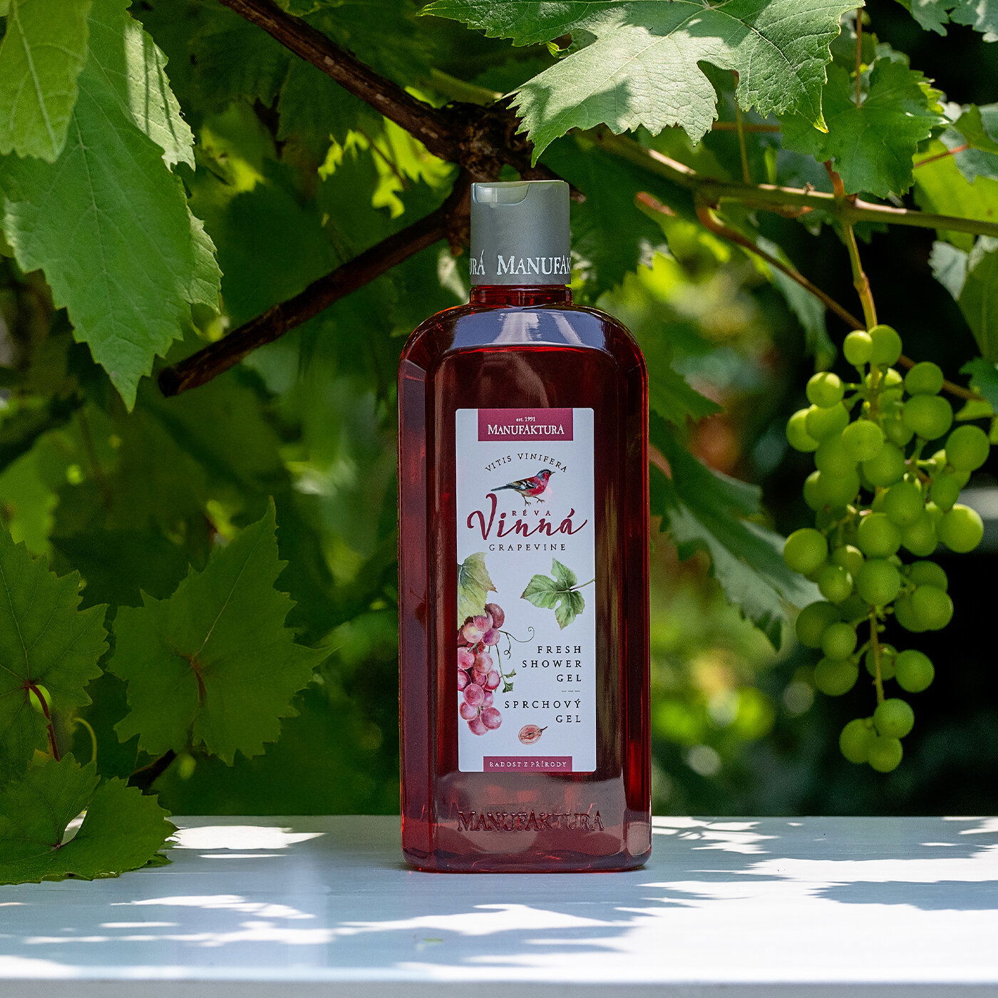 „Rádi využíváme lokální suroviny, a tento sprchový gel proto obsahuje moravské víno. Jemná receptura dále obsahuje výtažek z vinné révy, mandlový olej a panthenol. Osvěžuje, zjemňuje, hydratuje a zvláčňuje pokožku a krásně voní po ovoci.“
