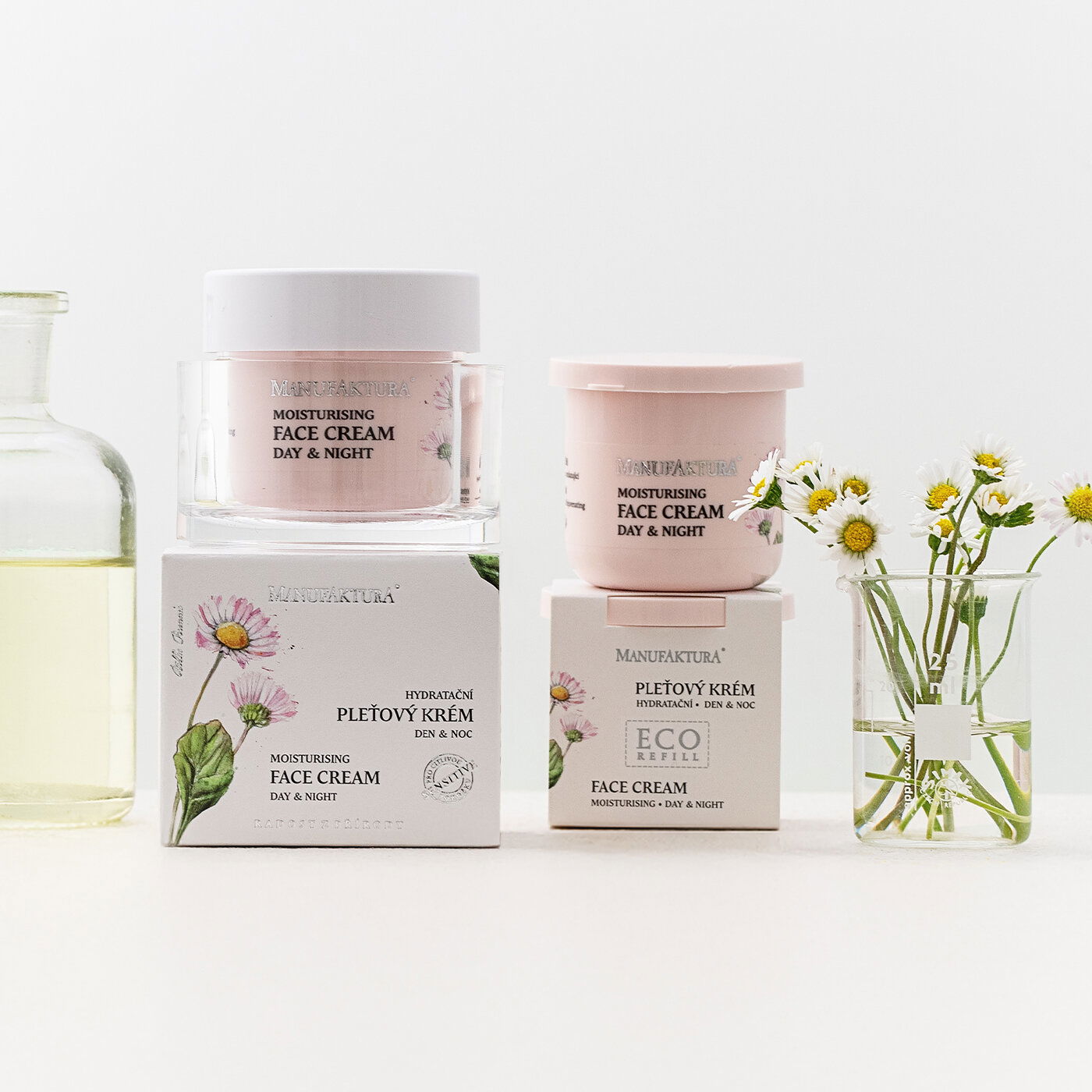 Děkujeme, že nám pomáháte šetřit přírodu! Vyměnitelná EKO náplň do vašeho oblíbeného pleťového krému ušetří až 14 originálních obalů. Hydratační pleťový krém 2v1 Sedmikráska spojuje benefity denní i noční péče v jediném produktu – ideální pro normální, suchou i citlivou pleť a pro všechny, kdo nevyžadují UV filtr. Má lehkou, příjemnou texturu, která se rychle vstřebává a zanechává pleť jemnou, vyživenou a hydratovanou. Cenné rostlinné oleje a bambucké máslo pečují o pokožku, zatímco aktivní látky – peptidy, kreatin, niacinamid či kyselina hyaluronová cílí na pružnost, hydrataci a zpomalit projevy stárnutí pleti. Fermentovaný oves podporuje rovnováhu a přirozený mikrobiom pleti. S něžnou vůní.